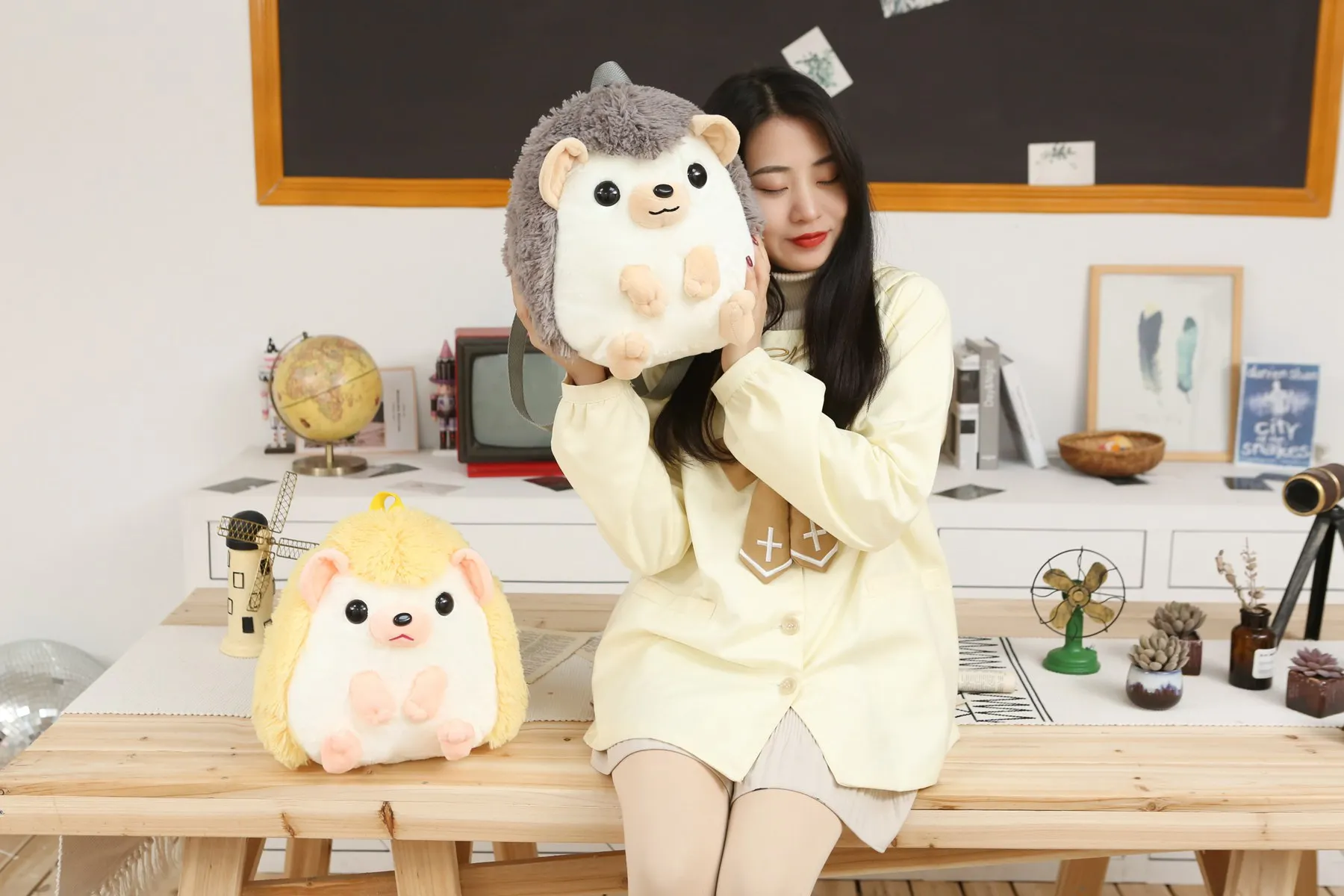 One Piece Cute Soft Hedgehog Plush Backpack Kawaii Comfortable School Bag Cartoon Animal Bag Children's Gift Boys Girls Student